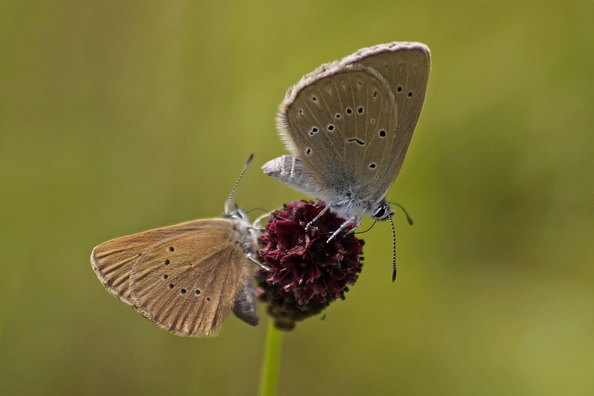 Die auf den ersten Blick vielleicht unscheinbar wirkenden Wiesenknopf-Ameisenbläulinge haben einen faszinierenden Lebenszyklus. Schon im Namen wird die komplizierte Kombination benannt. Sie sind gleichermaßen auf den großen Wiesenknopf als Wirtspflanze wie auf ihre Wirtsameisen angewiesen. Vor allem aufgrund eines Wandels in der Landnutzung sind die Arten europaweit stark gefährdet.